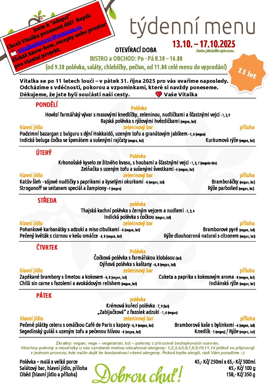 Poslední obědy v říjnu 2025!